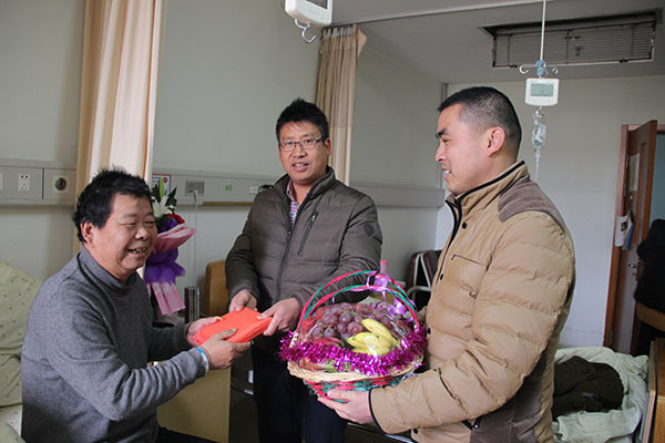 原來,商忠喜是浙江天工建設(shè)集團(tuán)有限公司工程部員工商祺東的父親,在2015年被查出患有癌癥已近一年,由于化療等需要大量的醫(yī)藥費,本來家境就不寬裕的商祺東一家立刻陷入了困境,甚至連父親第三次化療的醫(yī)藥費也出現(xiàn)斷缺。當(dāng)這一消息傳到集團(tuán)公司工會主席孫炎云的耳朵里后,想到這個年輕員工平時工作兢兢業(yè)業(yè)、默默無聞,深得領(lǐng)導(dǎo)和同事的贊許,作為企業(yè)工會應(yīng)該在這困難時刻幫他一把,于是就萌生了組織公司員工募捐的想法。在他的積極倡議下,在行政領(lǐng)導(dǎo)的大力支持下,一場“大愛,獻(xiàn)給員工家屬”的捐款活動就此拉開。于是“眾人拾柴火焰高”,捐款不分多少,善舉不分先后,從項目工地上趕來捐款,從委托他人代為捐款,我?guī)资?、你幾百,他幾千。一位不愿透露姓名的員工,寧可自己省吃儉用也要慷慨解囊,拿出了2萬元現(xiàn)金迅速轉(zhuǎn)身走人,讓工作人員見了備受感動。于是一場自愿為員工家屬募捐獻(xiàn)愛心活動取得圓滿成功。因此才有了文首公司工會主席孫炎云和工會副主席李天白在百忙中抽出時間,專程前往醫(yī)院送大愛的一幕。