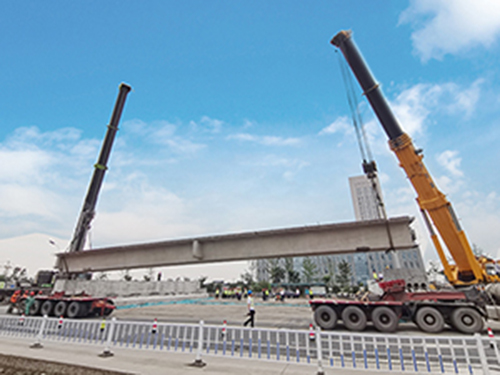 7月25日上午9點(diǎn)40分,在紹興二環(huán)西路智慧快速路施工現(xiàn)場(chǎng),一榀長(zhǎng)30余米重達(dá)140余噸的梁板成功吊裝。而這箱梁的生產(chǎn)制造商正是天工集團(tuán)旗下綠色建筑構(gòu)件工業(yè)化生產(chǎn)基地——浙江天壹重石建設(shè)科技有限公司。