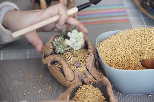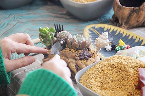 活動開始,工作人員詳細(xì)介紹了多肉植物的具體栽培方法,并為大家示范種植的步驟。接著,女員工們在工作人員的指導(dǎo)下,饒有趣味地栽培起來。挑選花盆、品種、移植花盆,小心翼翼地往盆里面添加泥土,再把各種多肉放進(jìn)去,添置小飾品……忙得不亦樂乎,她們完全沉浸在自我創(chuàng)作和自我欣賞之中。不一會兒,一盆盆充滿生機(jī)的多肉盆栽便呈現(xiàn)在大家的手中。