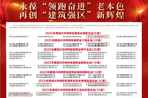 會(huì)上,對(duì)2023年度柯橋區(qū)建筑業(yè)各類先進(jìn)集體和個(gè)人進(jìn)行了表彰。天工集團(tuán)再次榮膺“建筑業(yè)領(lǐng)軍企業(yè)”(第七年)、“2023年度紹興市柯橋區(qū)建筑業(yè)十強(qiáng)企業(yè)”、“2023年度紹興市柯橋區(qū)建筑業(yè)安全管理先進(jìn)企業(yè)”等榮譽(yù)稱號(hào),旗下建筑工業(yè)化基地--浙江天壹重石建設(shè)科技有限公司獲得“2023年度紹興市柯橋區(qū)建筑工業(yè)化示范企業(yè)”榮譽(yù)稱號(hào)。除此之外,天工建設(shè)總經(jīng)理余恒杰榮獲“2023年度柯橋區(qū)建筑業(yè)優(yōu)秀經(jīng)營(yíng)者”榮譽(yù)稱號(hào),張賢方等15位同志被評(píng)為“2023年度紹興市柯橋區(qū)建筑業(yè)優(yōu)秀建造師”。